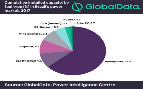 GlobalData表明,為應對干旱導致水電發電量下降的要挾,巴西政府傾向于推行非水電可再生動力,而不是熱能資源。2017年,該國的風力發電容量挨近15吉瓦,太陽能到達1.1吉瓦,估計到2030年末到達19吉瓦。
