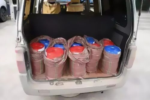 民警經(jīng)過作業(yè),發(fā)現(xiàn)兩名嫌疑人在四街鎮(zhèn)某飯館并前往抓捕。在四街派出所民警的幫忙下,將正在吃飯的兩名犯罪嫌疑人陳某(男,45歲)和楊某(男,37歲)成功捕獲。隨后,民警從嫌疑人駕馭的微型面包車里搜出了很多的電線,拆開一看,發(fā)現(xiàn)只要最外層的是真的,而里邊滿是實心的水泥塊。